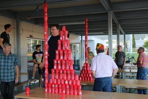 Anschliessend war die Geschicklichkeit beim Turmbau gefragt - klar dass unsere Wagenbauer hier im Vorteil waren. Beim abschliessenden Quiz wurde allerhand "unnützes Wissen" abgefragt, in dieser